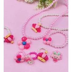 Kit 10 Cartelas Conjunto Colar E Pulseira Anel Infantil Pérolas Miçang