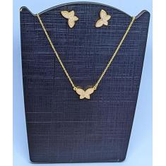 Kit Conujnto Colar E Brincos Feminino Adulto E Infantil Borboleta Pequ