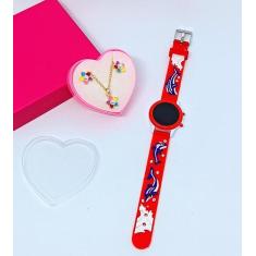 Kit Relógo infantil Digital Led menina Pulseira silicone Desenho anima