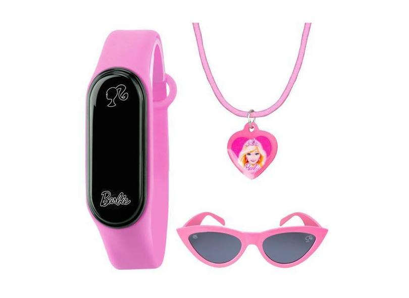 Oculos proteção uv + relogio digital barbie infantil + colar menina pr