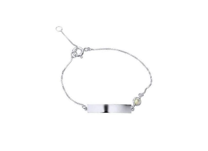 Pulseira Prata Infantil Placa Com 1 Pedra De Zircônia - Prata E Arte