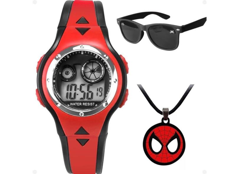 Relogio Infantil Vermelho Led + Colar + Oculos Proteção Uv