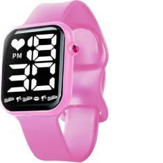 Relogio rosa prova dagua silicone digital infantil pulseira ajustavel casual menina