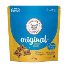 O menor preço encontrado no Brasil para Biscoito Dog Menu Baked Original para Cães 500g atualmente é R$ 18,49.