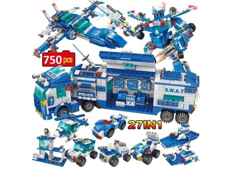 750 Peças Blocos Montar Polícia / Swat Azul Mega Caminhão +
