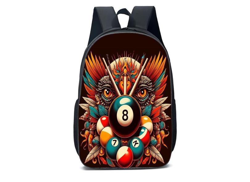 MOCHILA ESCOLA INFANTIL JUVENIL ANIME CORUJA NO MEIO DE BOLAS DE SINUCA-Unissex