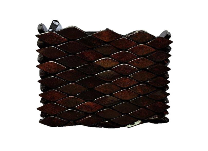 Bolsa Artesanal de Madeira Porta-Moedas, Marrom Escura