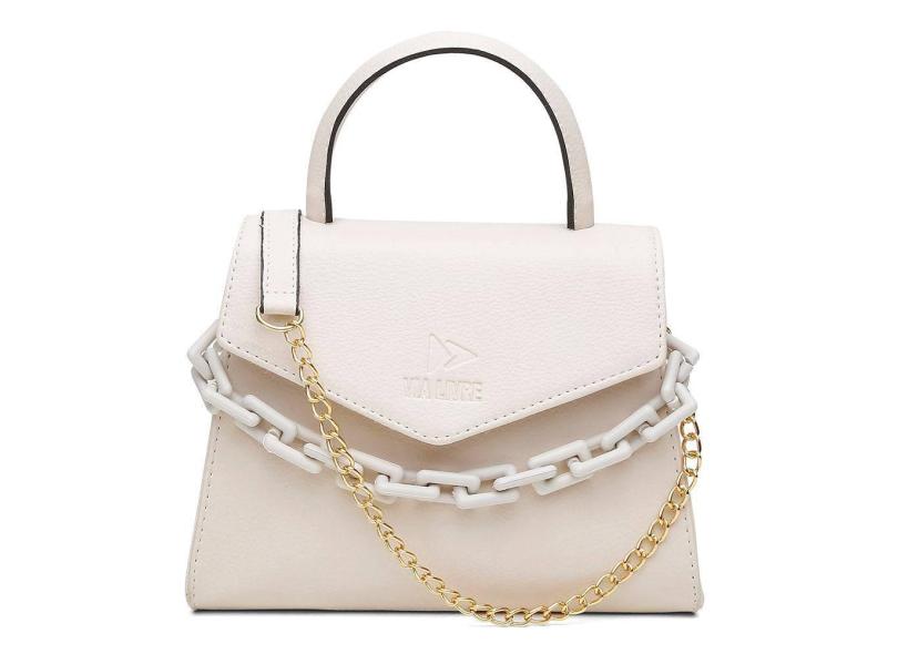 Bolsa Bau Amanda Block com Corrente e Alça Transversal Fecho Botão