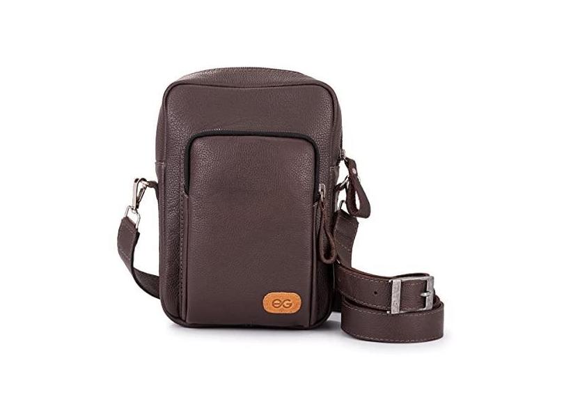 Bolsa Compacta Shoulder Bag Couro Legítimo Transversal (Marrom Escuro)