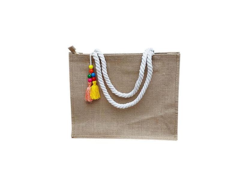 Bolsa de praia Ecobag: Sacola Rústica Juta com pingente colorido - ACa