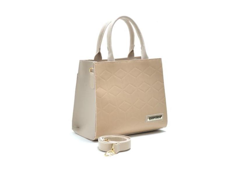 Bolsa Feminina Bicolor Com Bolso Externo + Alça Lateral ! - santorini,