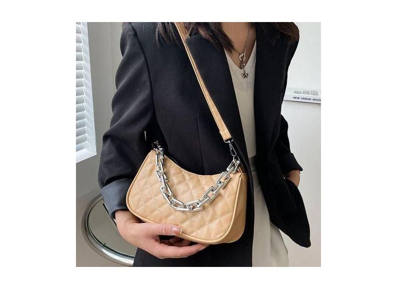 Bolsa Feminina Ombro Corrente Prata Treliça) Passeio - Unistar, Caqui