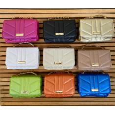 Bolsa feminina pequena de lado ombro e transversal alça corrente - SLE