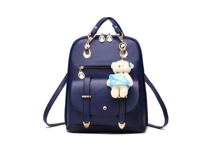 Bolsa Mochila Feminina Com Chaveiro Urso Em Couro Casual - KINGLEEN, A