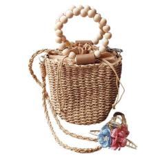 Bolsa Saco Bucket Palha Forrada Alça Destacável Fechamento Amarrar + P