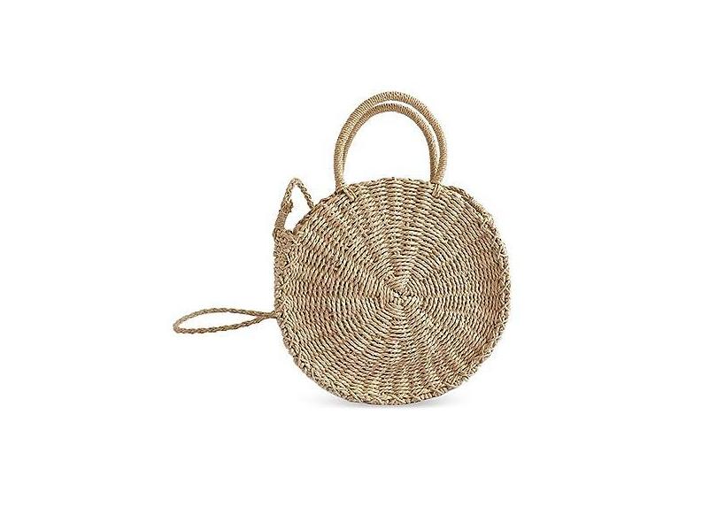 SilteD Bolsa transversal de palha silted para mulheres, bolsa redonda de palha, bolsa de praia com alça superior, bolsa de vime, bolsa circular de palha, bolsa de tecido com zíper