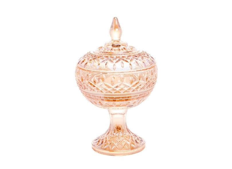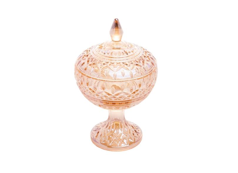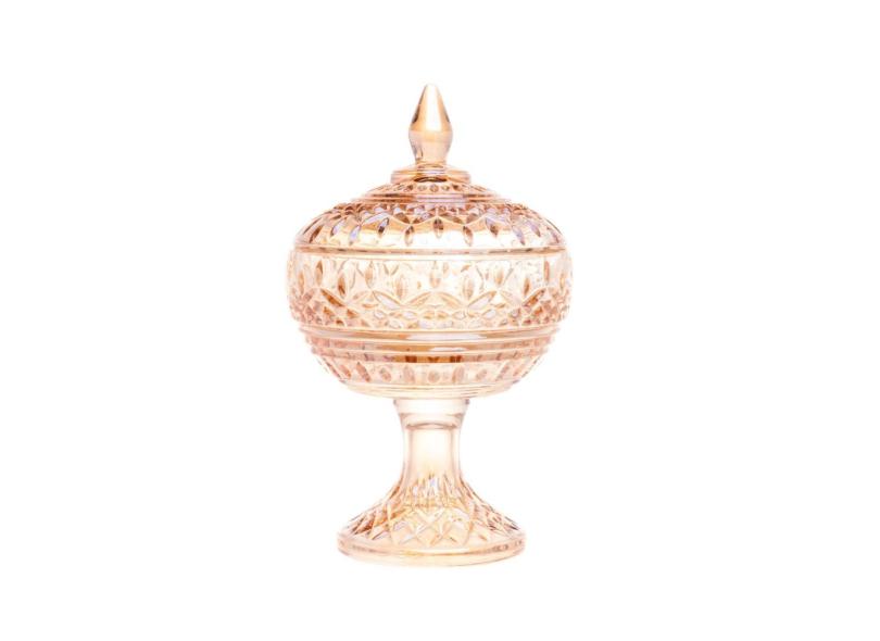 Potiche Decorativa Cristal com Pé Lys Âmbar 14X22cm - Wolff