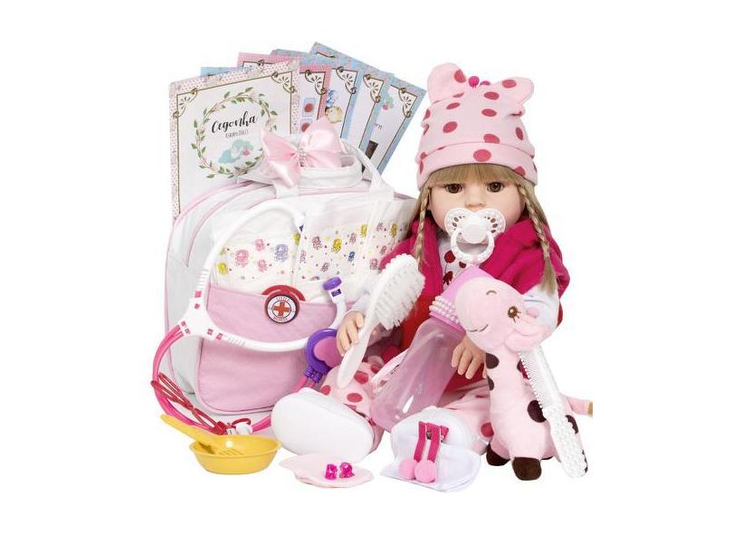 Bebê Reborn Boneca Girafinha Cabelo Loiro Com Vários Itens - Cegonha R