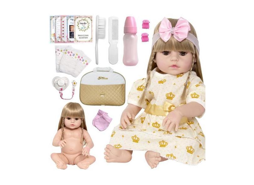 Bebe Reborn Boneca Menina Loira Princesa Bolsa Acessórios - Cegonha Re