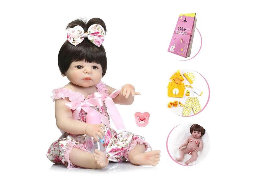 Bebê Reborn Menina Boneca Senta Vinil Siliconado com Acessórios - B05S