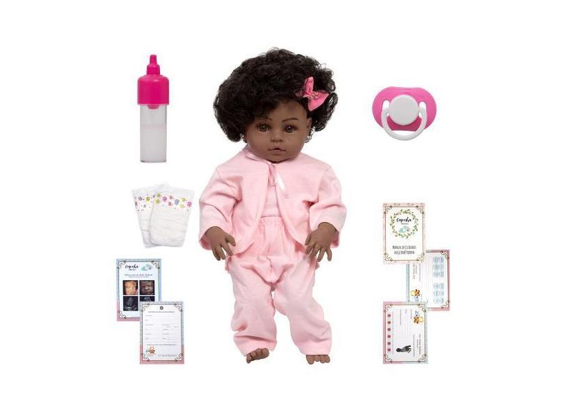 Bebe Reborn Menina Cabelo Cacheado Corpo Silicone Pode Banho - Cegonha