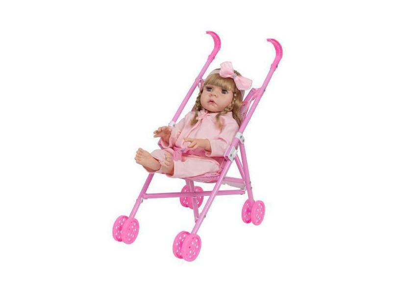 Bebê Reborn Menina Loira Fofinha Com Carrinho Rosa - Cegonha Reborn Do