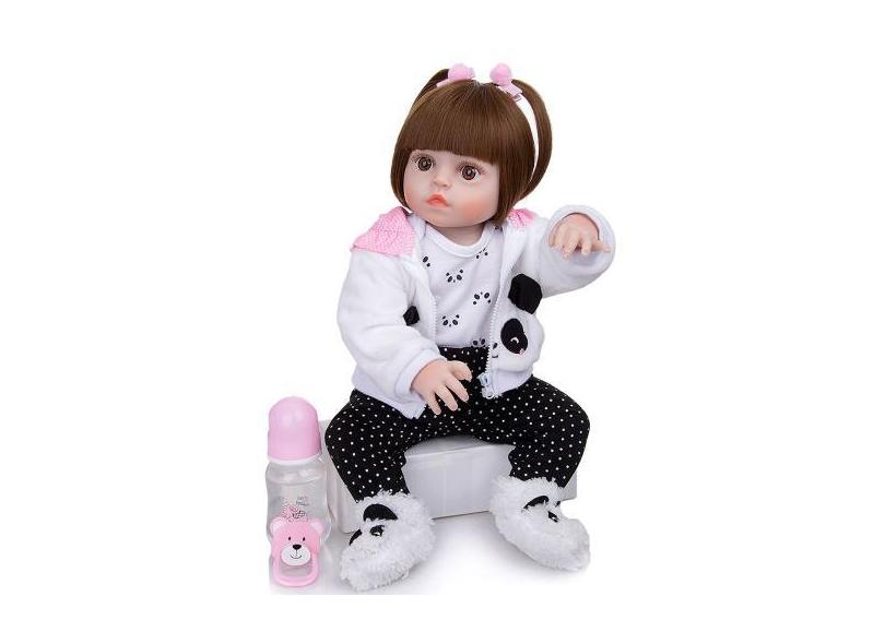Bebê Reborn Realista 100% Silicone Menina Panda Olho Castanho 48cm Con