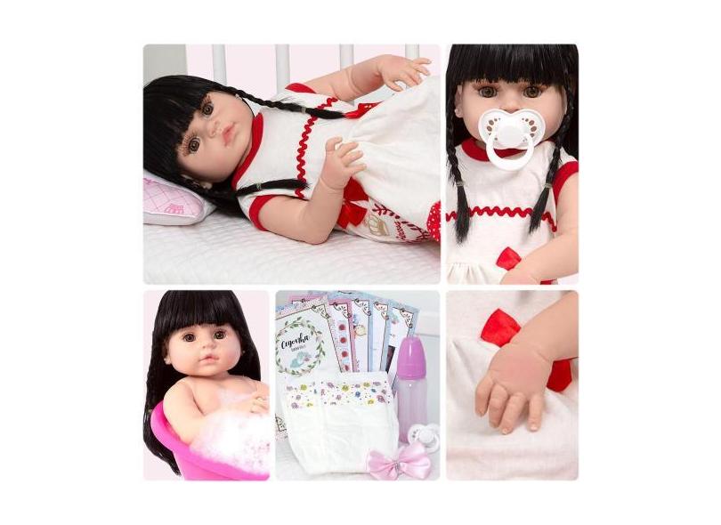 Bebe Reborn Realista Menina Morena Pode Banho + Kit 13 Itens - Cegonha