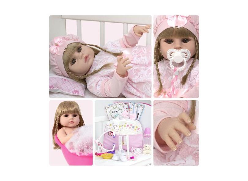O menor preço encontrado no Brasil para Bebe Reborn Recem Nascida Loira Completa Com Vários Itens - Cegonha Re atualmente é R$ 312,09.