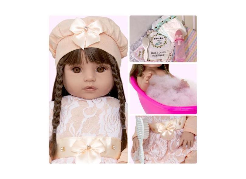 Bebê Reborn Siliconado Realista Menina Roupa Salmão C/ Itens - Cegonha