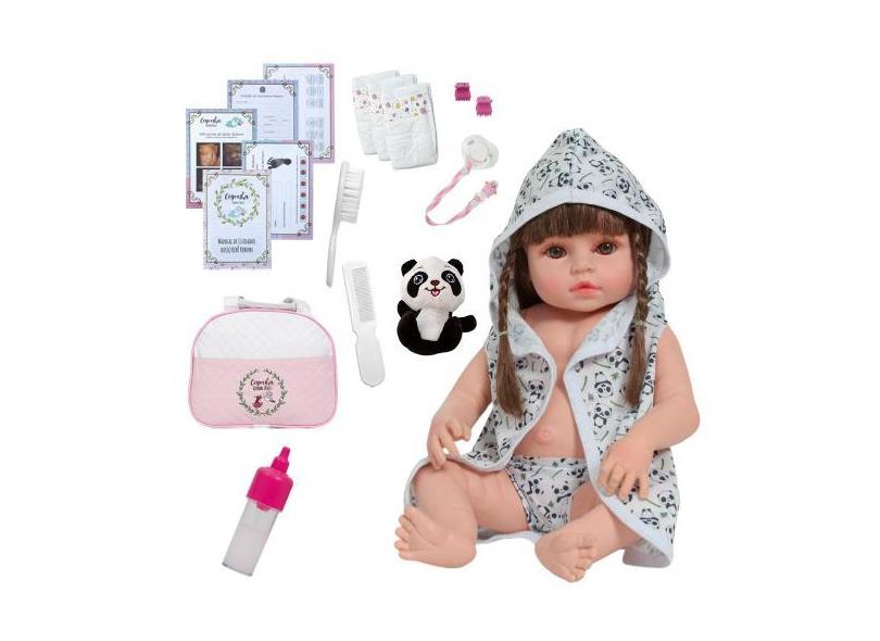 Bebê Tipo Reborn Boneca Pandinha Saída De Banho Bolsa Itens - Cegonha
