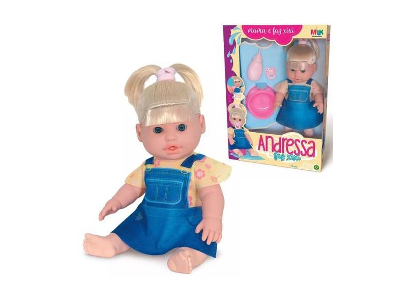 Boneca Bebe Andressa Faz Xixi Com Chupeta E Mamadeira Milk - Milk Brin