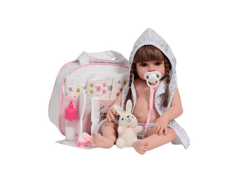 Boneca Reborn Bebê Cabelos Castanhos Enxoval Completo Bolsa - Cegonha