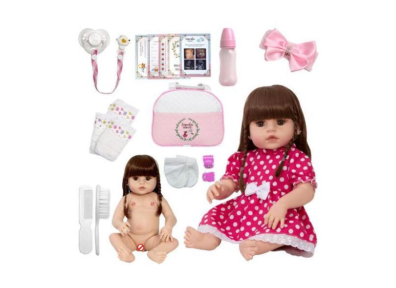 Boneca Reborn Laura Cabelos Castanhos Bolsa Maternidade - Cegonha Rebo