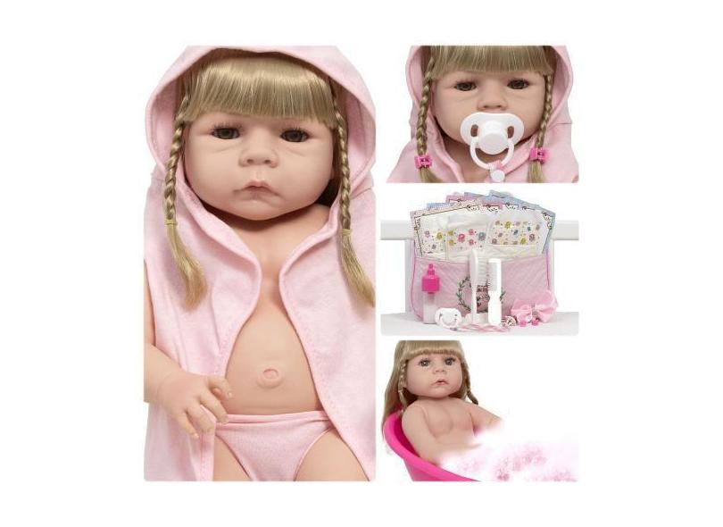 Boneca Reborn Loira 100% Silicone Enxoval Completo Bolsa - Cegonha Reb