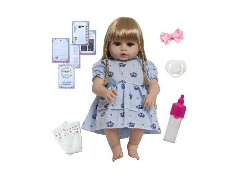O menor preço encontrado no Brasil para Boneca Reborn Princesa Vestido Coroa Fofinha Com Chupeta - Cegonha Reb atualmente é R$ 146,11.