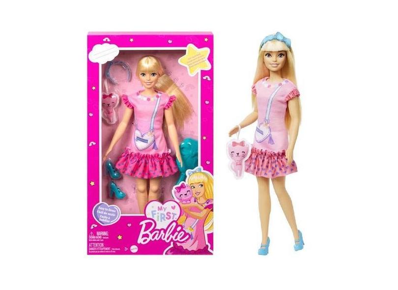 Boneca Articulada Barbie Malibu Vestido Rosa Loira 34cm Com Acessórios