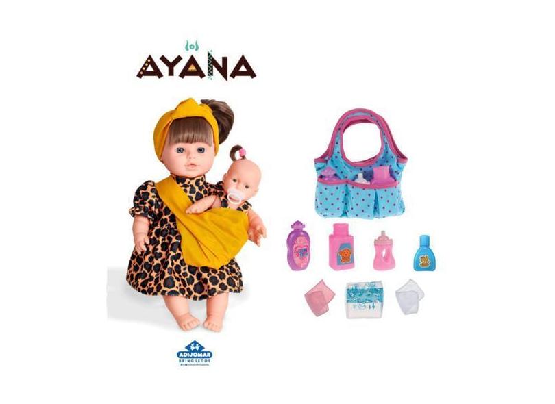 Boneca Ayana Coleção Africana Mãe Filha + Bolsa Maternidade - Adijomar
