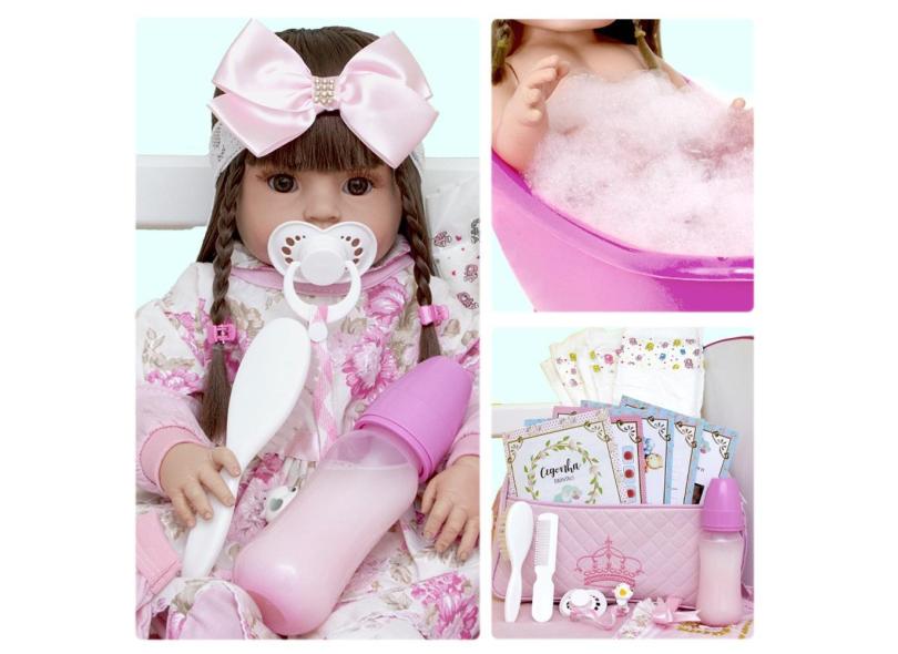 Boneca Baby Reborn Menina 100% Silicone e Lindos Acessórios