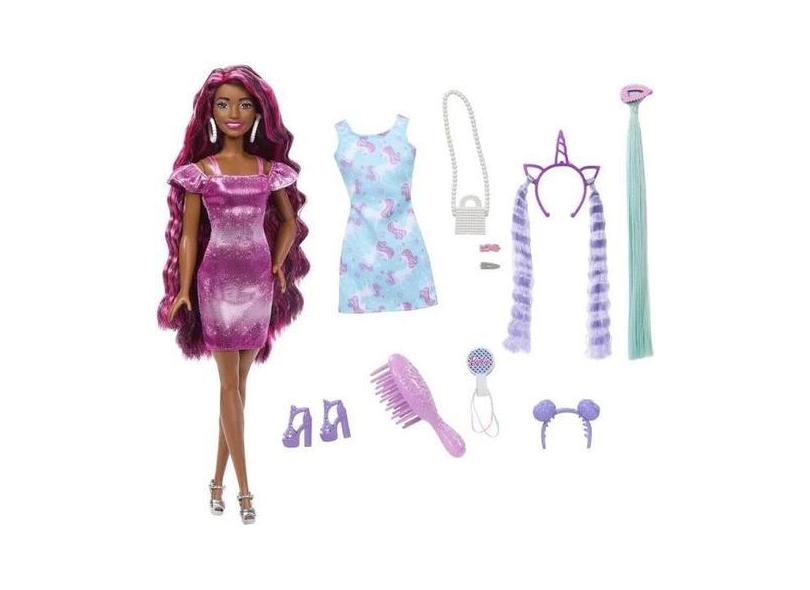 Boneca Barbie com Acessrios Totally Hair Vestido Roxo Mattel HKT95