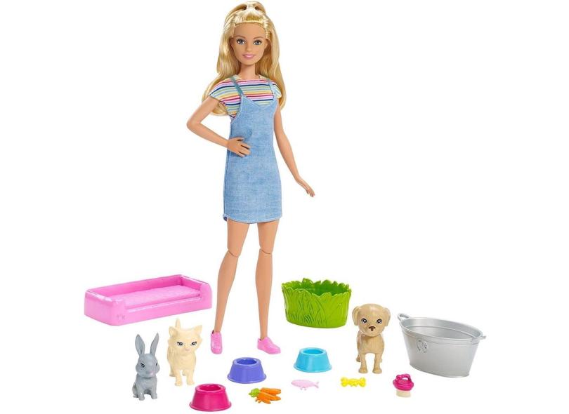 Boneca Barbie e Playset de Animais de Estimação com Mudança de Cor - Presente para Crianças 3 a 7 anos