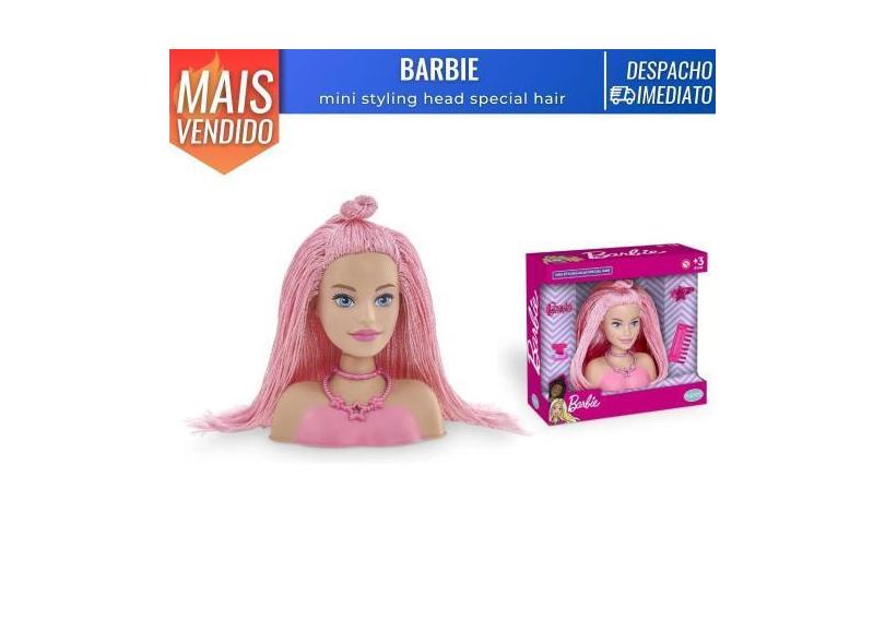 Boneca Barbie Pentear Mini Styling Head Special Hair Cabelo Rosa C/ Ac
