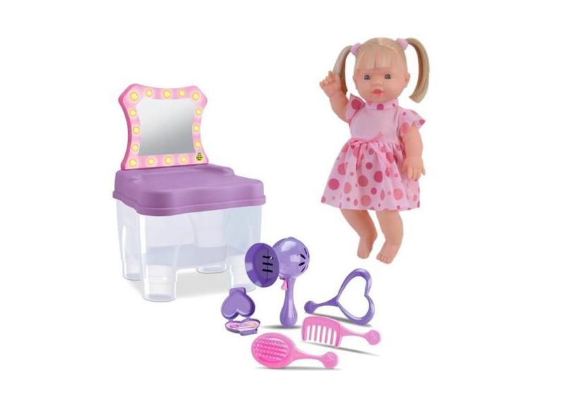 O menor preço encontrado no Brasil para Boneca Bebê Loira 30 Frases + Penteadeira Camarim Infantil - Adijomar atualmente é R$ 179,90.