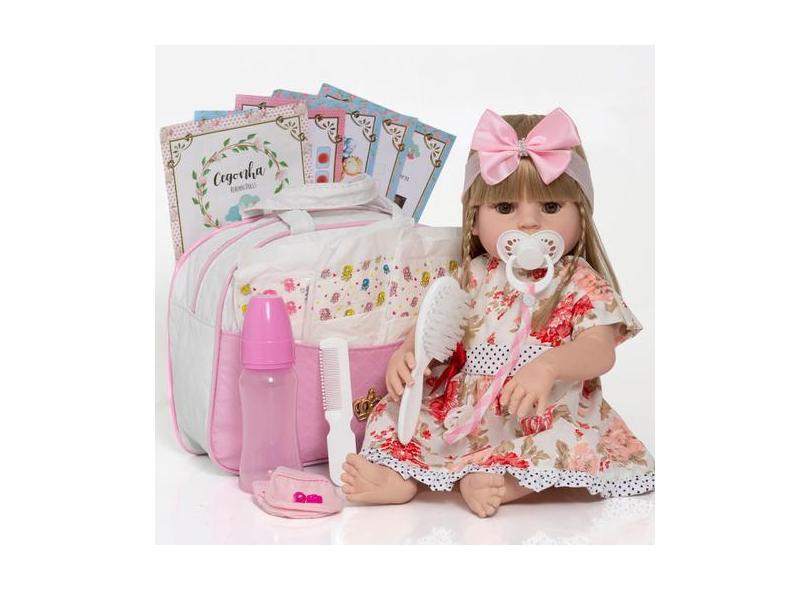 Boneca Bebê Reborn 100% Silicone Real Loira Enxoval Completo - Cegonha
