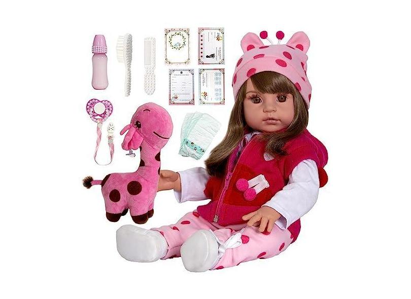 Boneca Bebê Reborn C/Girafinha Menina - 100% Silicone