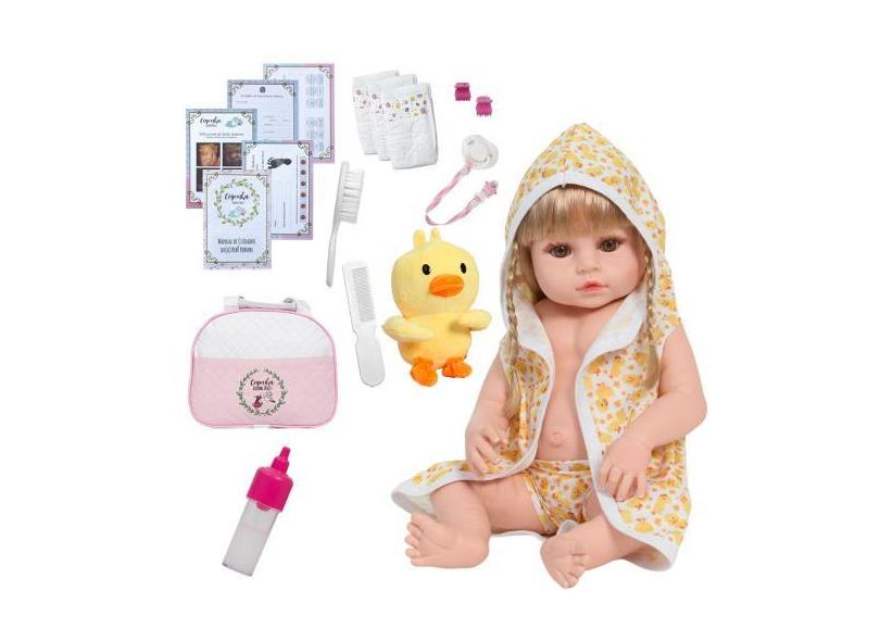 Boneca Bebê Reborn Cabelo Loiro Com Bolsa 20 Acessórios - Cegonha Rebo