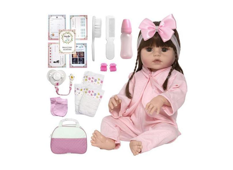 Boneca Bebê Reborn Fofa Princesa 20 Itens Bolsa Maternidade - Cegonha