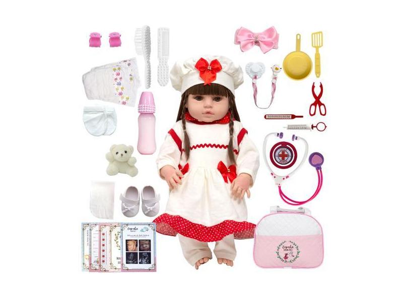 Boneca Bebe Reborn Gatinha Conjunto Vermelho Com Acessórios - Cegonha