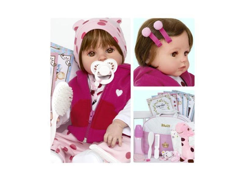 Boneca Bebê Reborn Girafinha 52cm Toda De Silicone + Enxoval - Cegonha