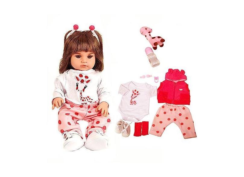 Boneca Bebê Reborn Girafinha Menina De Pano Olhos Castanhos